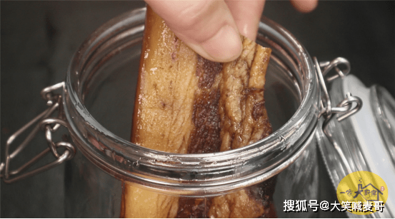 8、准备好玻璃瓶以后,我们要把准备好的腊肉,直接放入玻璃瓶中,将腊肉摆放均匀以后,再盖上盖子,让腊肉处于密封的环境下保存。