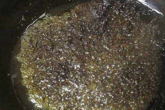 2、油内放适量油,用小火炒香豆豉,加入生抽、白糖、料酒调味;