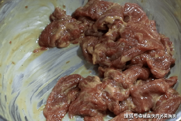 打入一个鸡蛋,抓入一小把淀粉,这种食材既能锁住水分,又能让牛肉滑嫩,抓拌均匀腌制30分钟。
