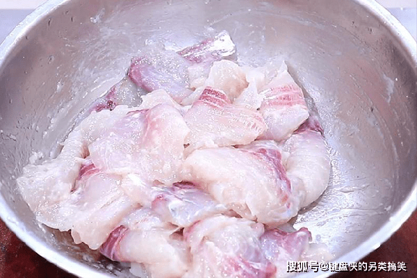 准备宰杀过的草鱼一条,把鱼肉片下来再去除鱼皮,再把鱼骨斩成均匀小块,清洗干净。加入食盐2克、胡椒粉2克,打入一个蛋清,撒入少许淀粉,最后淋入一点植物油腌制10分钟。