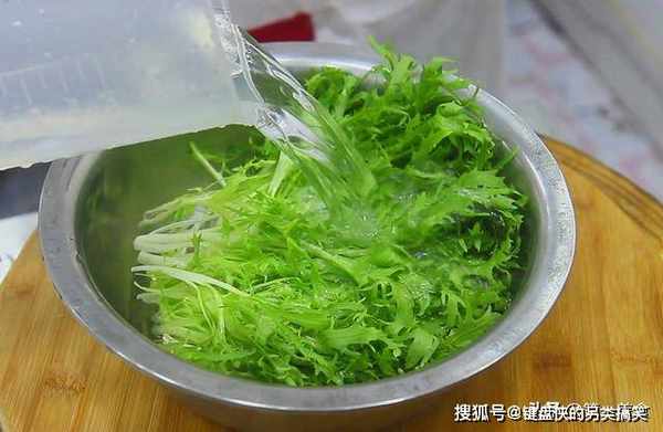 买来的苦菊,我们先清洗干净,然后控去水分。