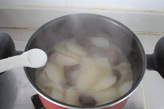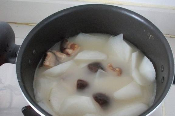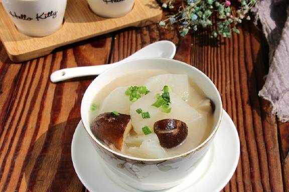 初春的天气,咋寒咋暖,一不小心就受寒凉后会引起感冒咳嗽等病症,香儿我也没逃过一劫,弄等我咳嗽不止,没胃口。最难受的是痰多,咳嗽多见于支气管炎导致的,妈妈来电话说,可以炖点白萝卜来缓解,因为白萝卜是有清热祛痰的功效的,还可以治疗肺热。因萝卜含有大量的粗纤维,所以用了提前煮好的排骨汤炖煮使得白萝卜更加的鲜嫩,喜欢干香菇的味道,加了几个干香菇进去一起炖煮,炖好后迫不及待的喝了一大碗,原汁原味的清甜味,人也感觉轻松多了。