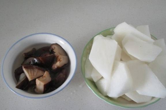 备好白萝卜和干香菇