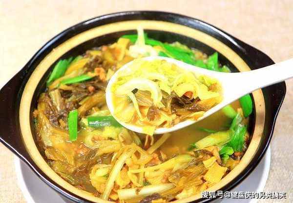 7.10分钟以后倒入白菜帮和豆腐皮,翻拌均匀以后继续炖5分钟。5分钟以后把白菜叶和蒜苗放入锅中稍微烫一下,再加入一勺鸡精,蒜苗断生以后淋入一点花椒油,这道营养又实惠的酸菜炖锅就做好了。