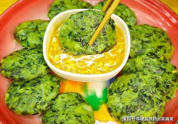 5.捣碎以后放入碗中,加入适量的生抽、陈醋、香油,倒入一点凉白开,把料汁调拌开,这道清香鲜美的菠菜饼就做好了。