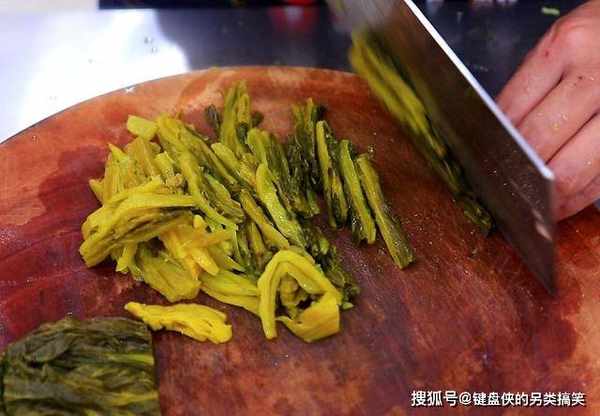 1.准备五花肉200克,剁成肉粒;酸菜200克放入清水中,洗去上面的盐分后切成长条。