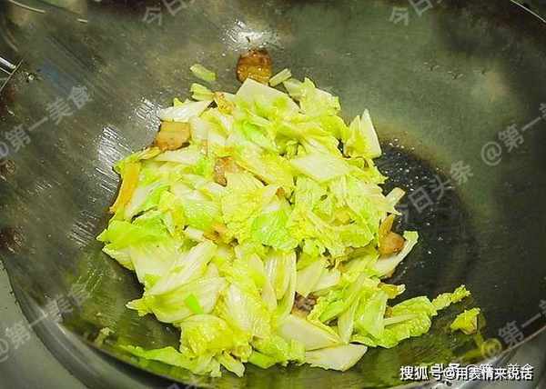把白菜炒到微微塌架以后,调味:放