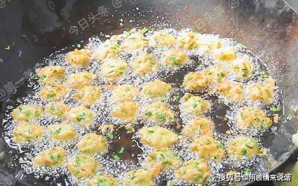 锅内烧宽油,油温四成热时,开始下丸子。