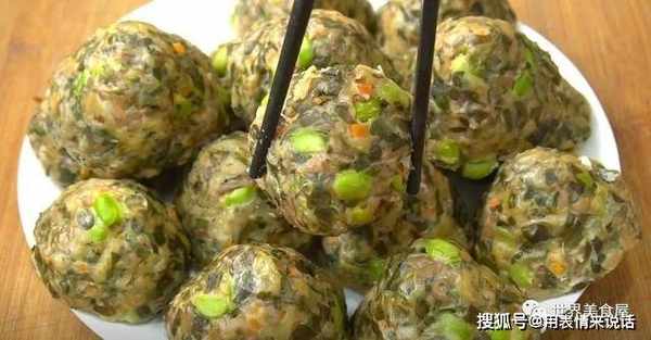 4、搅拌好的馅料,抓起一坨,搓成窝窝头造型。