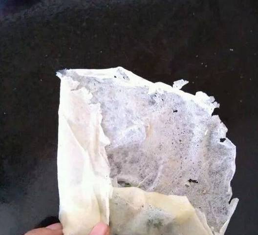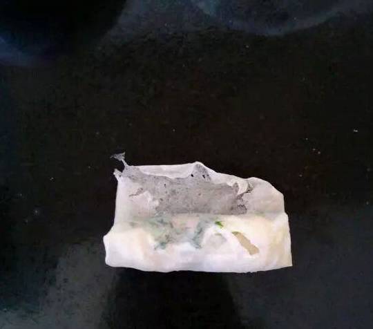 6.小心撕开一张春卷皮,把荠菜馅放在靠近自己的一端,将下面的春卷皮向上卷起,刚好盖住馅料~