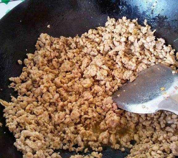 3.热锅加油,放姜末炒香,倒入精肉末,翻炒,加料酒,盐,生抽调味,炒熟后关火~