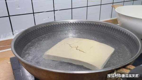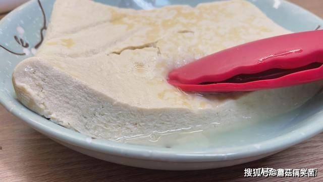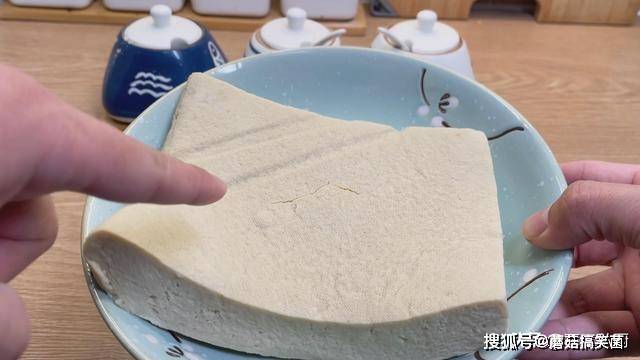 4、这个时候豆腐晾凉了,可以看到豆腐中有好多的水,要把水分挤出来,才能吸收更多的汤汁。