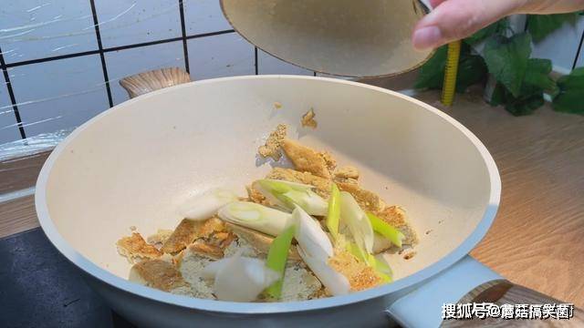 7、然后加入之前,切好的葱段,小火翻炒一下,把葱段的葱香味,炒出来,然后,加入一把干花椒,增加一丝麻麻的味道,小火把花椒的味道炒出来。