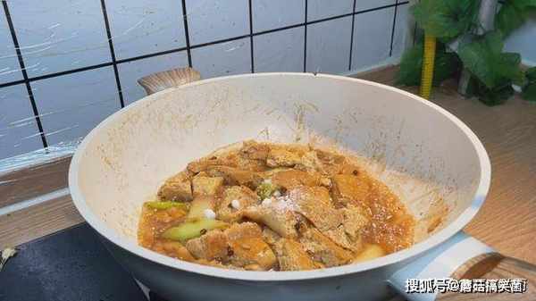 1、这个是我放在冰箱中,冻了七七四十九个小时的冻豆腐,冻豆腐表面有好多的小孔,小孔可以吸收足够的汤汁,这个小孔是好吃的关键。