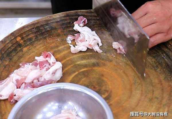 2.准备一小块五花肉,切成肉丝备用。线椒、小米椒各几根,洗干净以后都切成小段,放在一起用来配色。