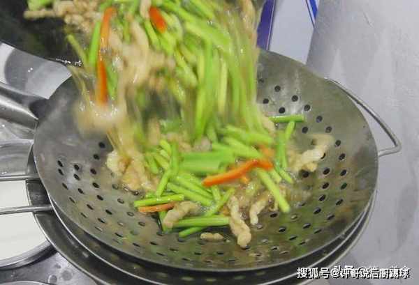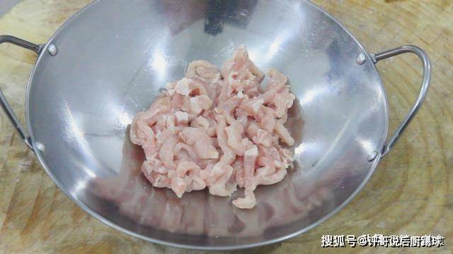 1.锅内加入植物油,油温烧至5成热(接近冒烟)时,慢慢抓入准备好的肉丝,开小火,炸40秒左右倒出。(放入肉丝时,如果有粘连,就用勺子轻轻打散)
