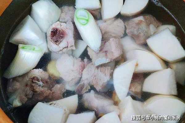2、排骨有多种烹饪方式,清炖入口最清爽,砂锅中加入足量的清水,放葱姜萝卜,大火煮开。