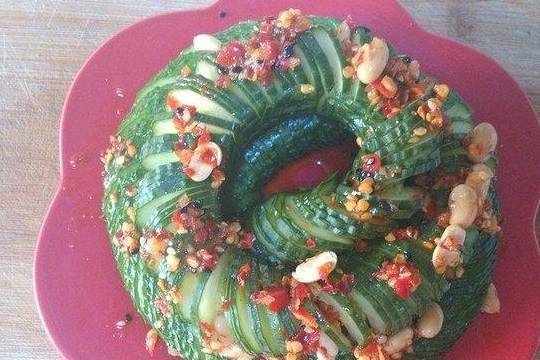 通常咱们在家拌黄瓜,不是切丝就是切块。其实在外观上稍做改变,就让普通的不能再普通的一道凉菜变得赏心悦目,吃起也更清脆爽口。喜欢的亲们可以试试看哦,超简单哒~当然黄瓜虽美味,但是也不是可以毫无顾忌的吃哦,黄瓜当水果生吃,不宜过多。而且维生素较少,因此常吃黄瓜时应同时吃些其他的蔬果。黄瓜尾部含有较多的苦味素,苦味素有抗癌的作用,所以不要把黄瓜尾部全部丢掉。有肝病、心血管病、肠胃病以及高血压的人都不要吃腌黄瓜,脾胃虚弱、腹痛腹泻、肺寒咳嗽者;肝病、心血管病、肠胃病患者慎食。