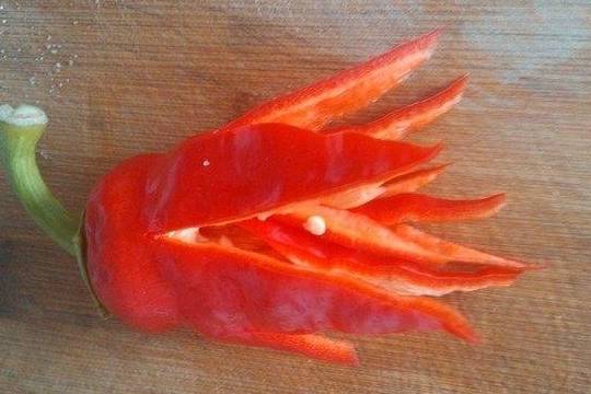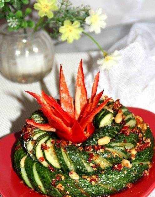 9.装饰上红椒,漂亮的蓑衣黄瓜上桌了