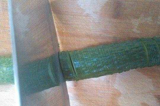 2.黄瓜洗净去两头,刀与黄瓜成45度角斜着切,不要切断