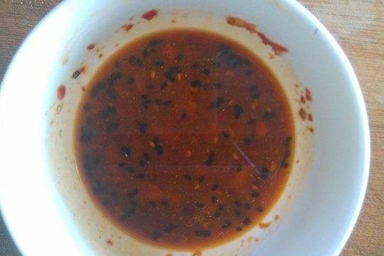 6.自制麻辣豆瓣里加入适量生抽、白醋,调成汁