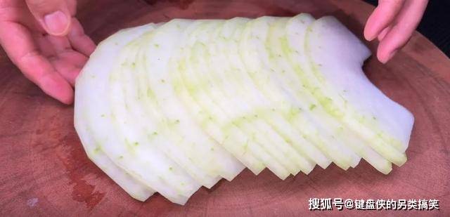 2.冬瓜去皮切薄片,跟硬币厚度差不多即可。