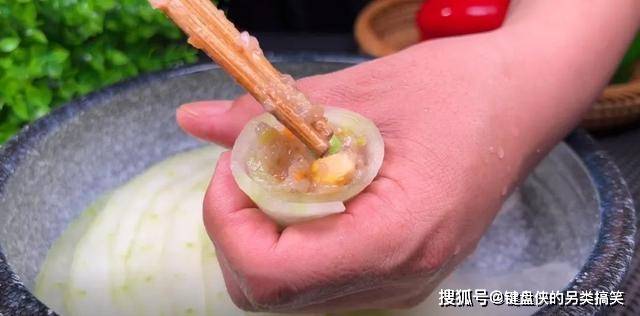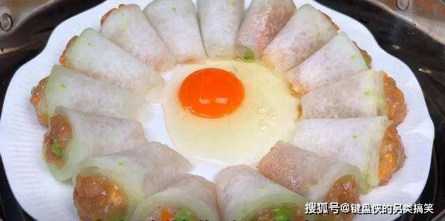 9.做好的冬瓜卷沿着盘子摆成一个圈,中间打入一颗鸡蛋。