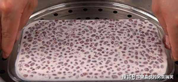 3.浸泡好的红豆再次清洗一遍,控干水分后平铺到蒸屉上。