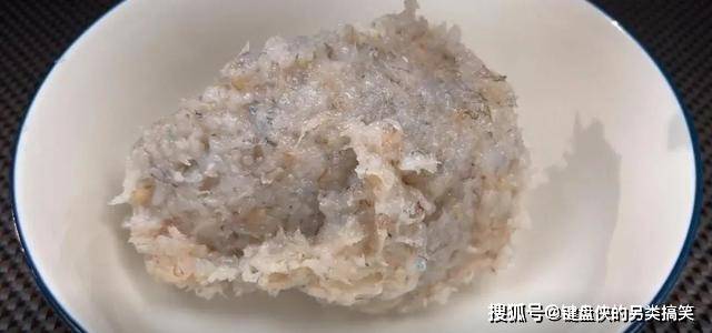 4.虾仁放案板上剁碎,剁好装入碗中。