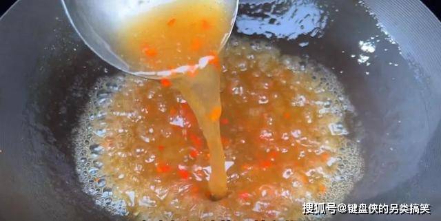 11.出锅后发现盘中蒸出很多汤汁,将汤汁倒入锅内,再加少量清水。