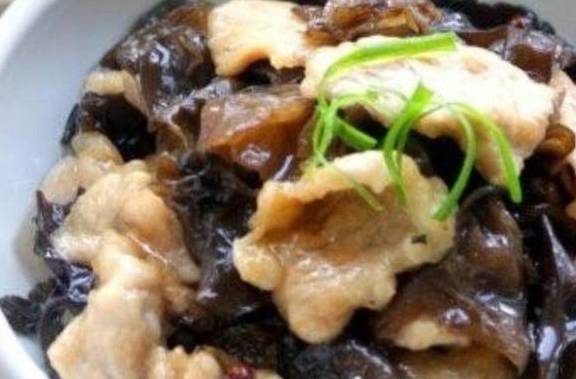 2、起锅烧热倒油,加入花椒小火炒香后,倒入肉片煸炒至变色捞出,下入木耳快速翻炒至熟,加入少许盐略炒一下即可出锅。