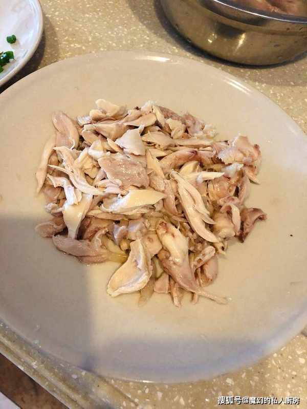 温度不烫手开始撕条,你爱吃多大的就撕成多大就可以了,我撕呀嘶呀撕,三只鸡腿撕了这么一盘,放在一旁备用。
