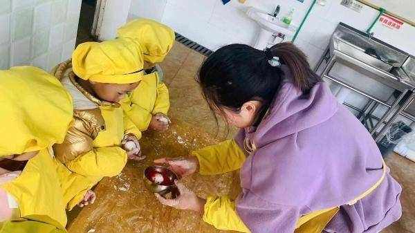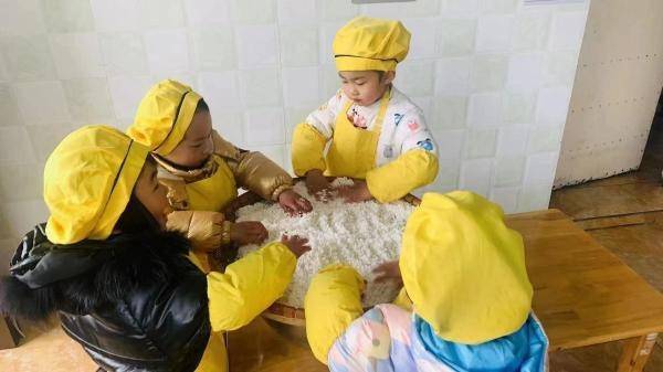 3月3日上午,巍山中心幼儿园古渊头园区小班教室里时不时传出孩子们讨论的声音,原来他们正在制作东阳的特色美食—杨梅馃。