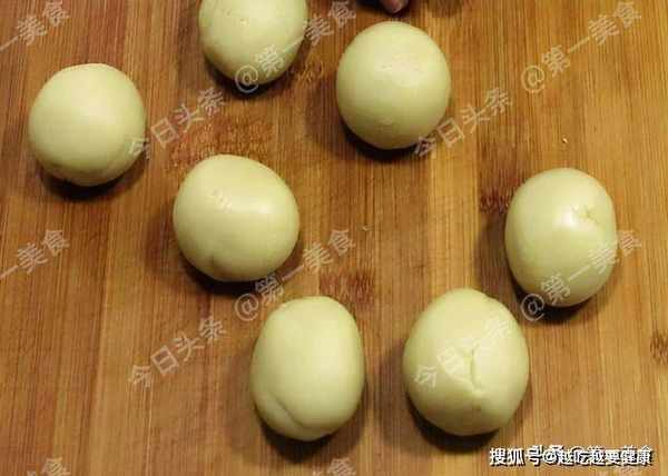 在案板上刷点油,把晾凉面团取出来。揉光滑、搓成长条、揪成大小均匀的面剂子,包着白糖,把收口处收紧了,收到最后揪下多余的小面揪,防止炸裂和漏糖。