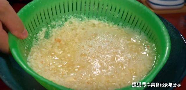 5.大蒜倒入料理机,打成蒜泥,用清水洗去表面的粘液,控水备用。