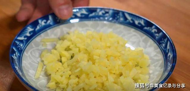 6.生姜去皮切成姜末,放入碗中备用。