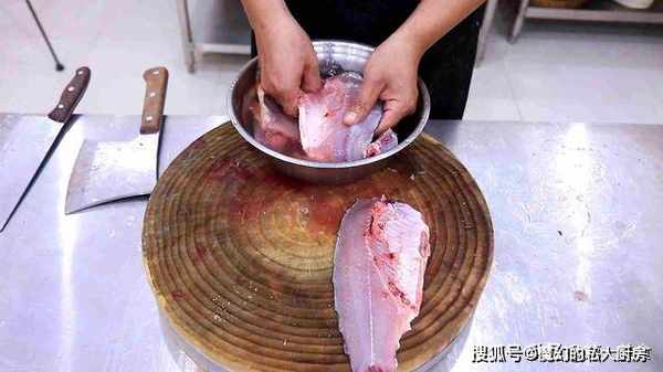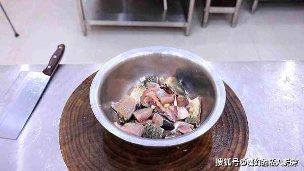 1.首先,我们准备宰杀干净的鲤鱼一条,先把鱼头剁下来,沿着脊骨把两边的鱼肉片下来,鱼头也剁小块 ,剁好以后放入清水中把上面的血水洗干净。