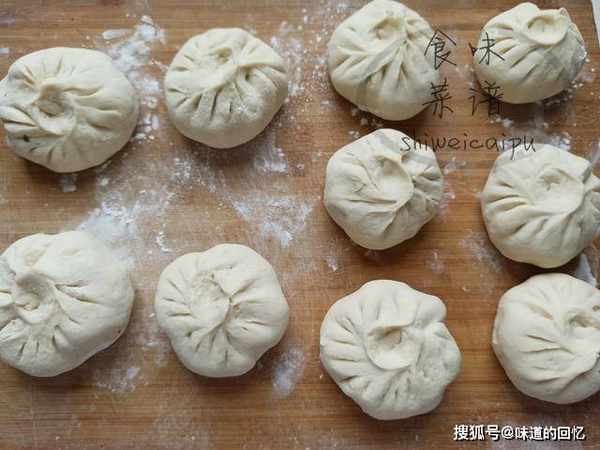 5、面团要用酵母粉发酵,揉成面团后,大约醒一个小时,将面团揉一揉,去掉内部空气,然后分面剂、擀皮,舀入适量的馅料,包成包子形状。