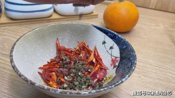 3、这个时间,我们来剪点辣椒丝,我这里用的是微辣比较香的辣椒,加点花椒,加点麻椒,加入清水,把它们清洗一下,清洗掉,多余的灰尘,这样炒制的时候,也不容易糊。