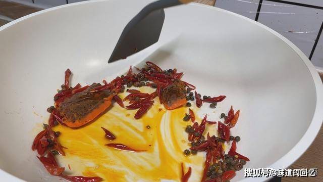 8、下入之前,准备好的小料,再来一块,火锅底料,小火把红油炒出来。