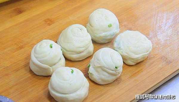 面层拉的薄些,饼的分层会更好,更酥,然后沿一边卷起长条,卷成圆团,捏住两边以免葱花漏出来,按压成面团,按照上面的步骤,依次做出剩余的葱花饼。