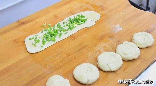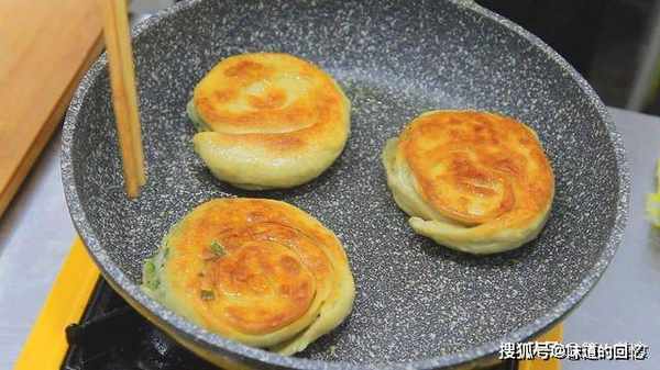 等到两面煎黄,就可以取出葱花饼,按照上面的方法,把其他的葱花饼也都做出来,就可以食用了。
