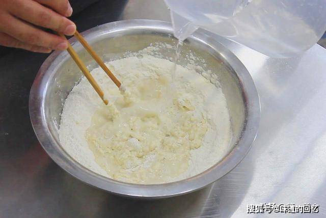 然后锅内烧油,油温七成热时,倒出热油,浇在面粉上面,在轻轻搅动至均匀,油酥就做成了。