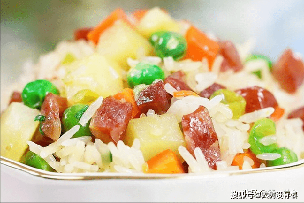 和平时蒸米饭一样,电煲锅调停以后咱们香喷喷的五彩饭就做好了,拌匀以后即可安心享用。