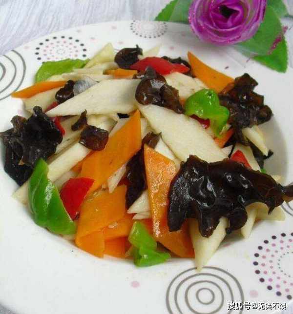山药,木耳,尖椒,胡萝卜,葱,油,盐。