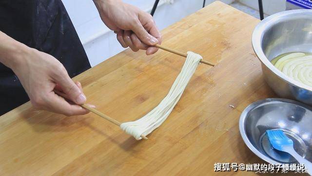 这个过程不要用力过猛,免得把面条拉扯断。