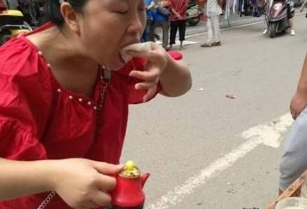 也许是看到红色衣服美女吃的很过瘾,一个小伙子也将一个春卷一口放在嘴里就给它吃下去了,只看见这小伙子竟然辣的面部表情十分丰富,都可以拿来做表情包了…大姐摊位虽然特别小,不过做出来的东西可是特别有特色的呢,一元钱卖两个,不一会儿就卖出了一两百呢,这可不比普通上班族的收入还高呢!