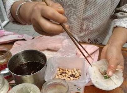 原来这位大姐卖的东西,在她们那里一种叫“春卷”的小吃,这个美食制作材料非常简单,都是一些日常中可以经常看见的东西。不过特别的是大姐在里面加了一样很特别的东西,这个东西就是芥末,芥末听到这个词,有的纷纷都有些退群了吧,毕竟芥末这种东西可不是一般的人能够接受的,不过不知道为什么这位大姐在春卷里面加了芥末,反而味道很独特十分好吃,很多人为了尝试就纷纷掏出钱来吃这个春卷,图中看见一个穿着红色衣服的美女拿着大姐已经做好的春卷,估计是怕芥末太辣,所以提前就准备好了醋在手上,这位美女吃下去吃后,瞬间说不出话来了,鼻子都是鼻涕,芥末呛人是出了名的,虽然这样,但是确实很好吃。