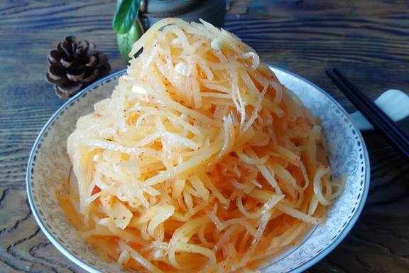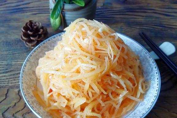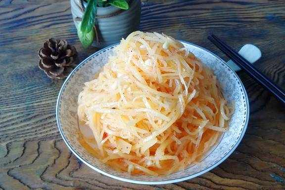 1.土豆丝粗细要切得均匀些,这样能熟制程度一样