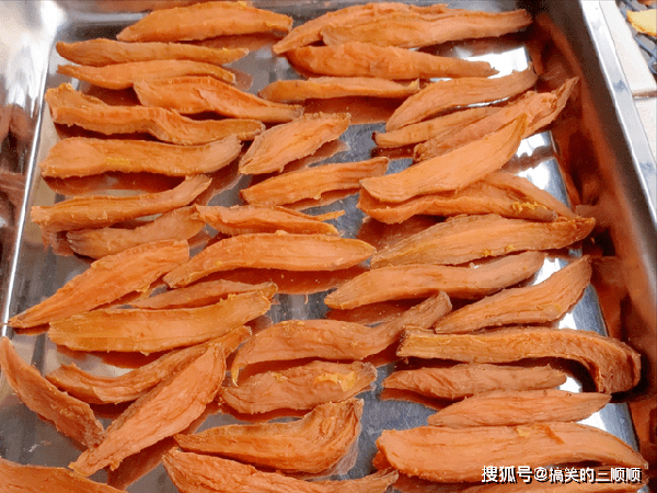 6、等晒完两天以后,将红薯干三次上锅蒸,这次只需蒸20分钟就可以了,关火放凉以后,第三次晾晒一天,三晒三蒸的红薯干就制作完成了,按照这个方式晒的红薯干,香甜可口,嚼劲十足,平时多吃一些,